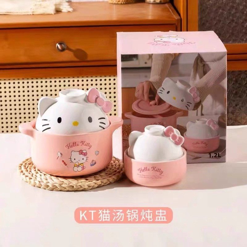 【新品上架】三丽鸥陶瓷Kitty1.2L汤锅+炖盅(不可明火)/ Hello Kitty 1.2L Ceramic Soup Pot with Steaming Cup (Not Flameproof)