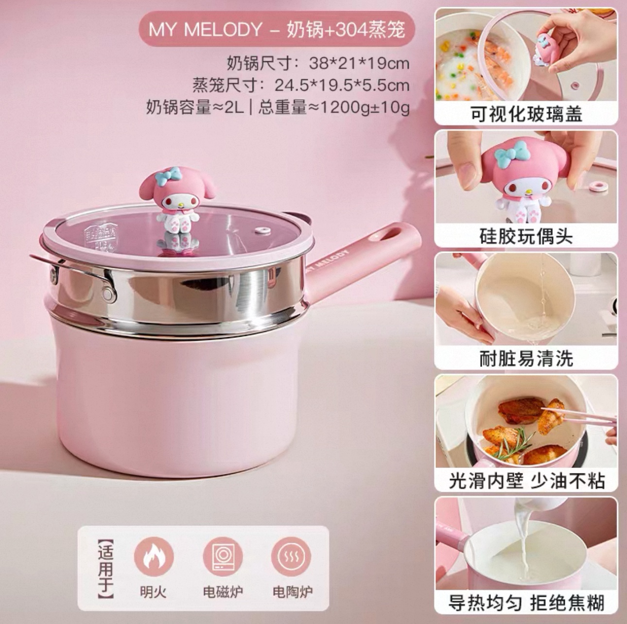 【新品上架】三丽鸥19cm奶锅 带蒸笼 Melody / Melody 19cm Milk Pot with Steamer By SANRIO
