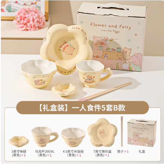 【新品上架】原创猪仙子系列餐具套装一人食5件套B款 / Lulu The Pig Fairy Series 5 Pieces Set B