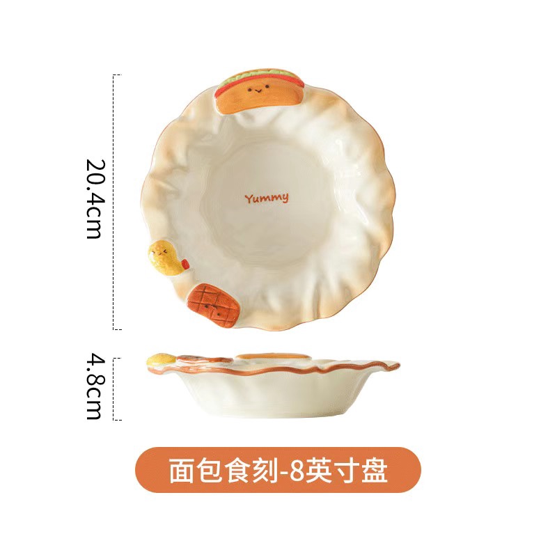 【新品上架】可爱浮雕面包系列 8寸盘 / Embossed Bread Series 8 inch Plate