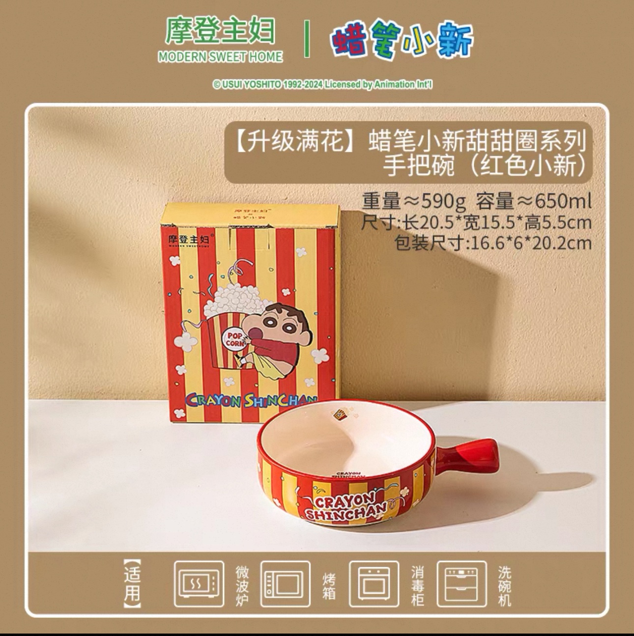 【新品上架】摩登主妇蜡笔小新甜甜圈系列手把碗 满花红色小新 / Crayon Shin-chan Donuts Red Handled Bowl By MODERN HOUSEWIFE