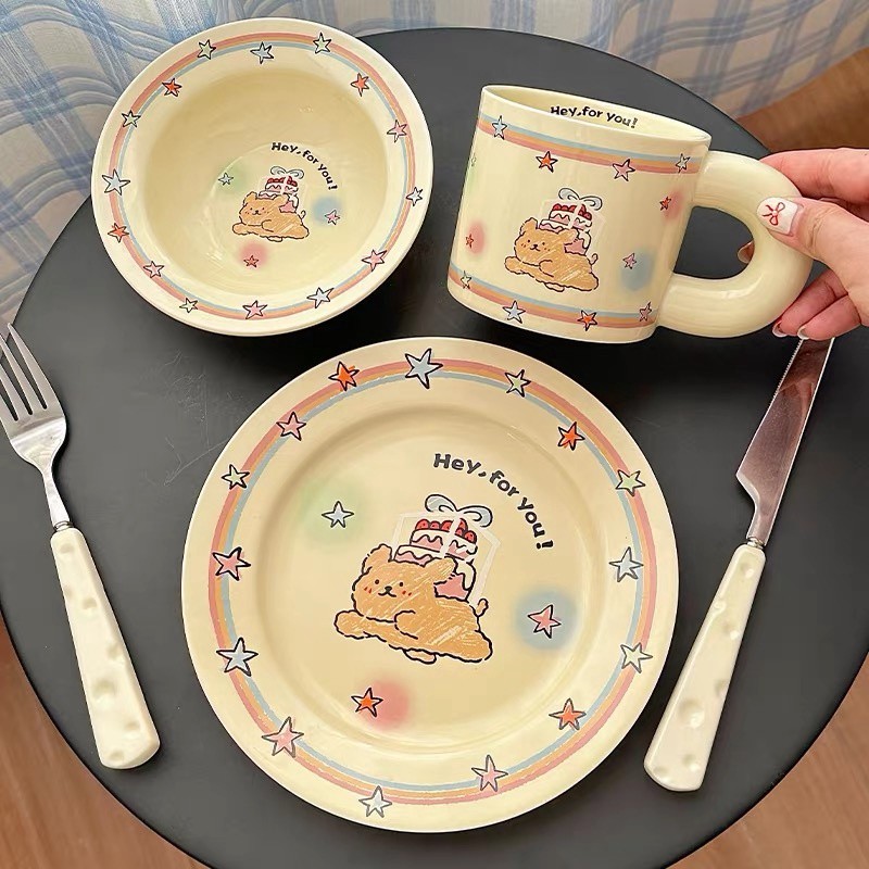 【新品上架】陶瓷餐具套装可爱小狗三件套(不含刀叉)/Puppy Ceramic Dining Set 3 pieces (Knife and Fork Not Included)