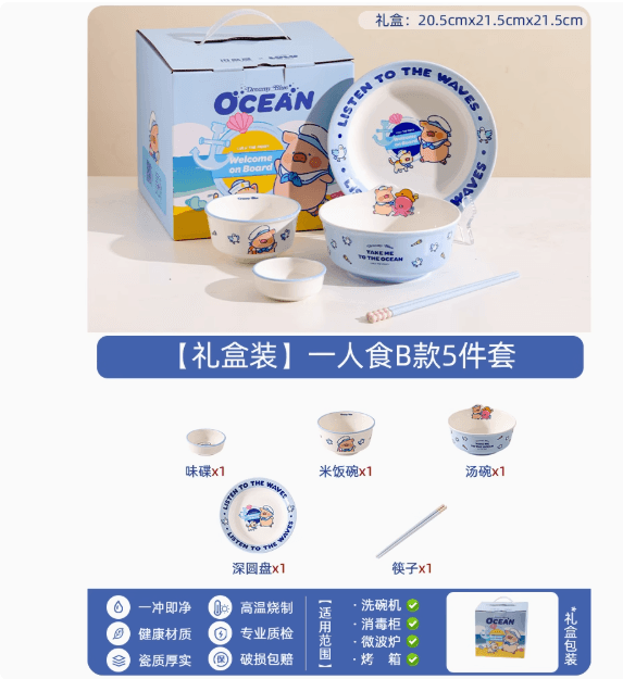 【新品上架】LuLu猪海洋系列餐具套装 一人食B款5件套-礼盒装 / Lulu The Pig Ocean Series Tableware 5 Pieces Giftbox B