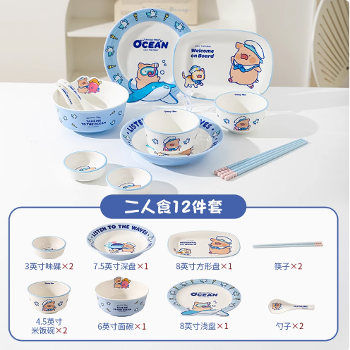 【新品上架】LuLu猪海洋系列餐具套装 二人食12件套 / Lulu The Pig Ocean Series Tableware 12 Pieces Set