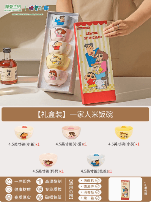 【预订】摩登主妇蜡笔小新一家人米饭碗 5个装 /【Pre-Order】 Crayon Shin-chan Family Rice Bowl 5 Pieces Set By MODERN HOUSEWIFE