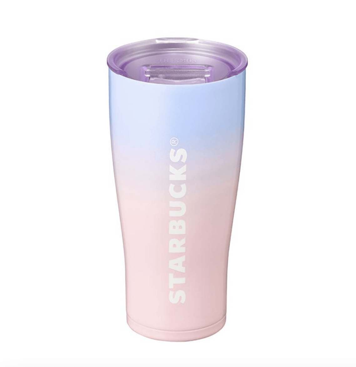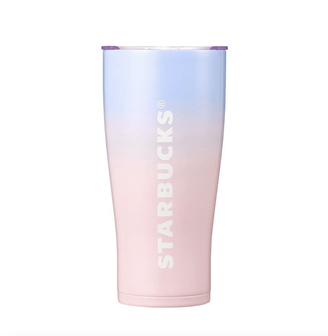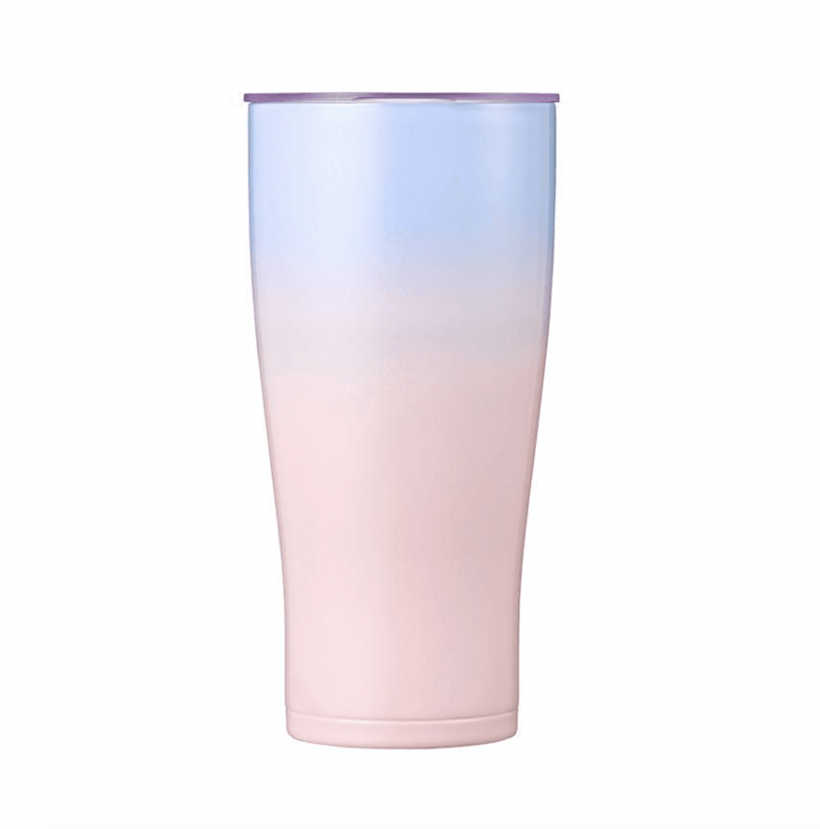 这是一款 480 毫升的玻璃杯,具有和谐的粉色和紫色渐变。